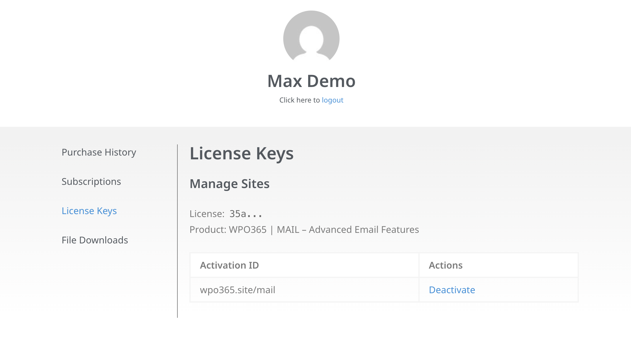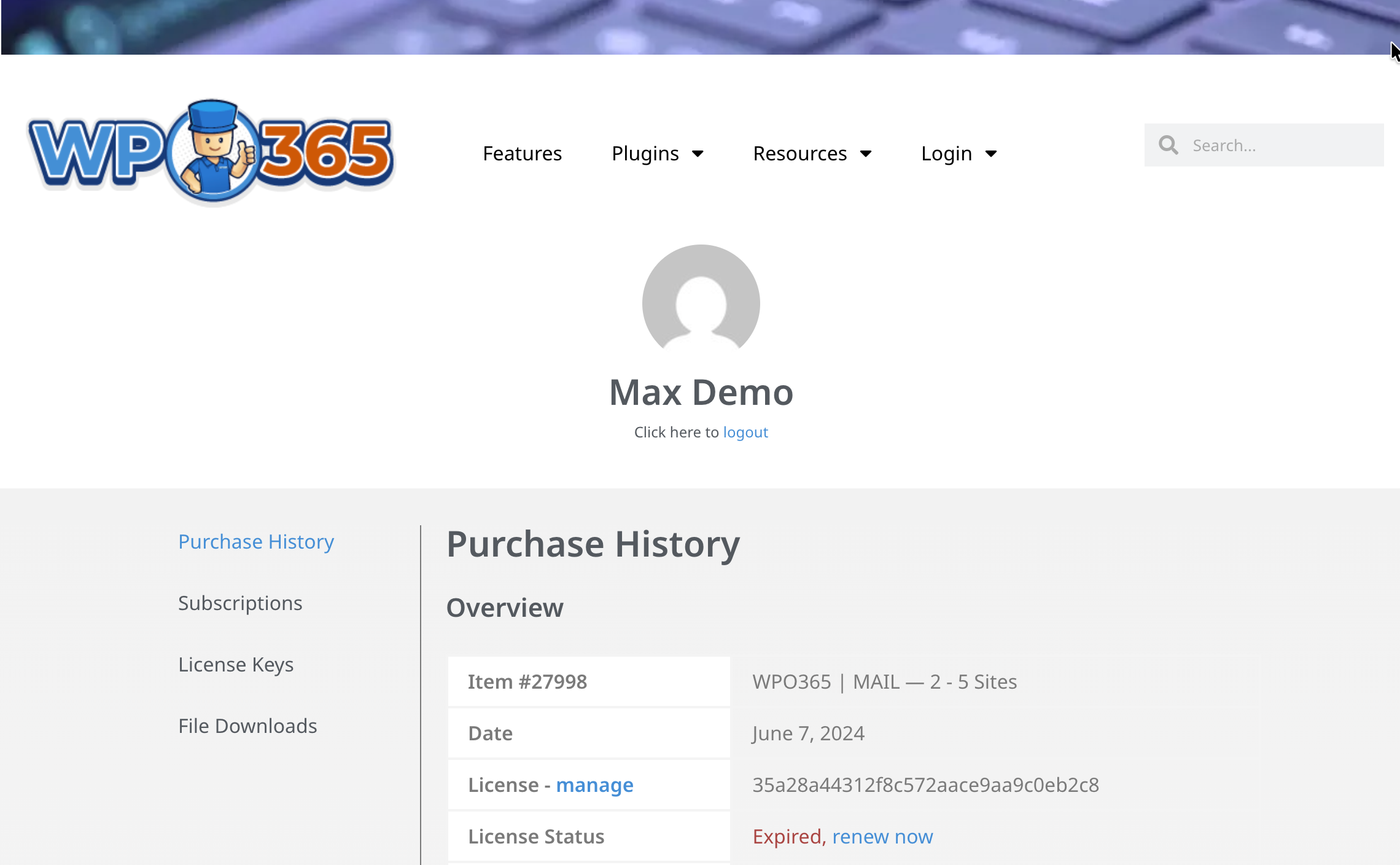 When you purchased an item through our website you also created an account. You can always access your account when you navigate to https://www.wpo365.com/your-account/ and it allows you view / manage: