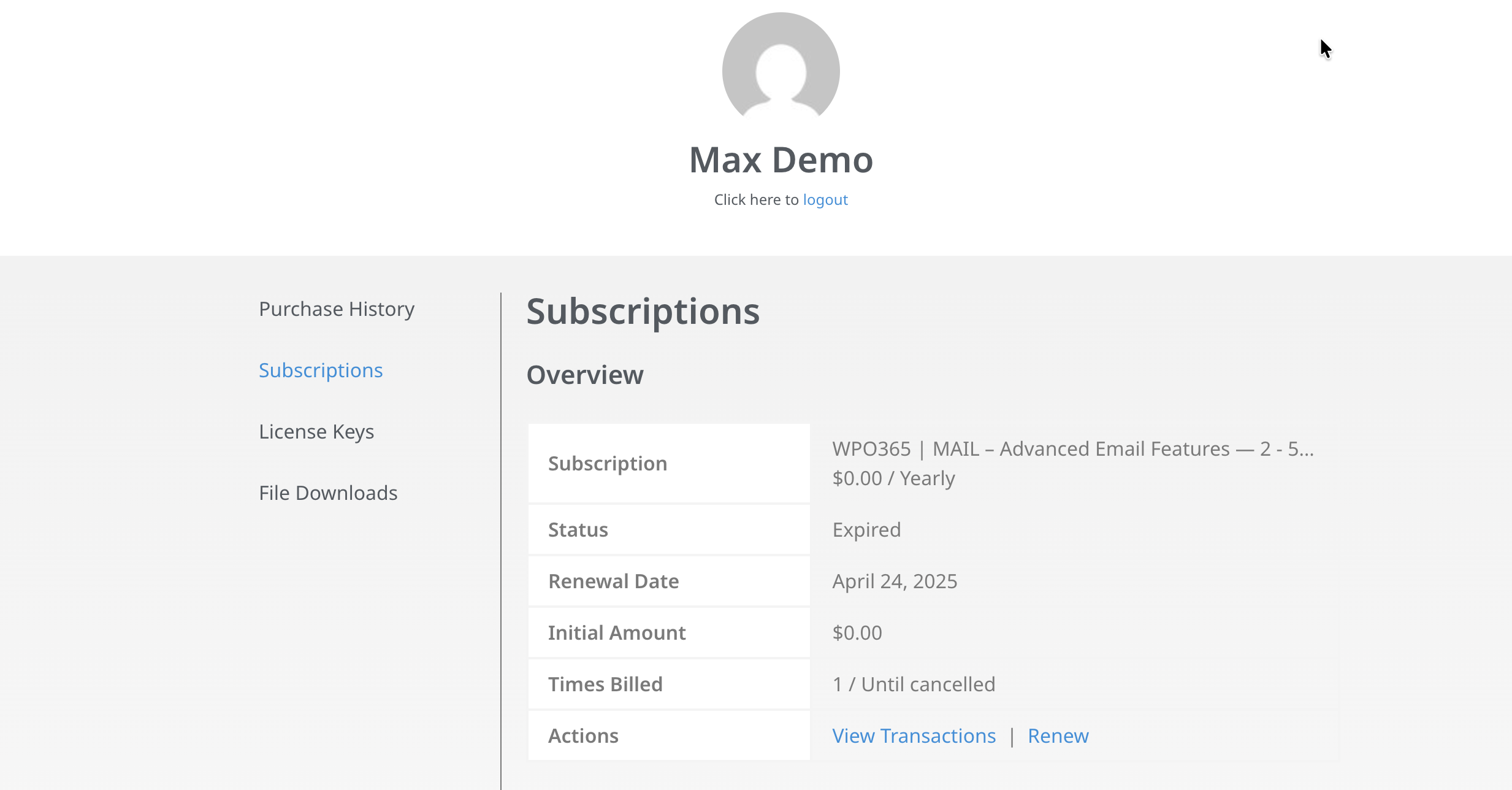 You can - for example - Update Payment Method, Renew or Cancel the subscription. If you cancel a subscription it will not automatically renew and the license will expire at the end of the current period. Once your license is expired you cannot update the (premium) plugins that you purchased.Please be aware that if your payment was made via PayPal, you cannot update your payment method directly. Instead, you should update your payment method through your PayPal account on the PayPal website.